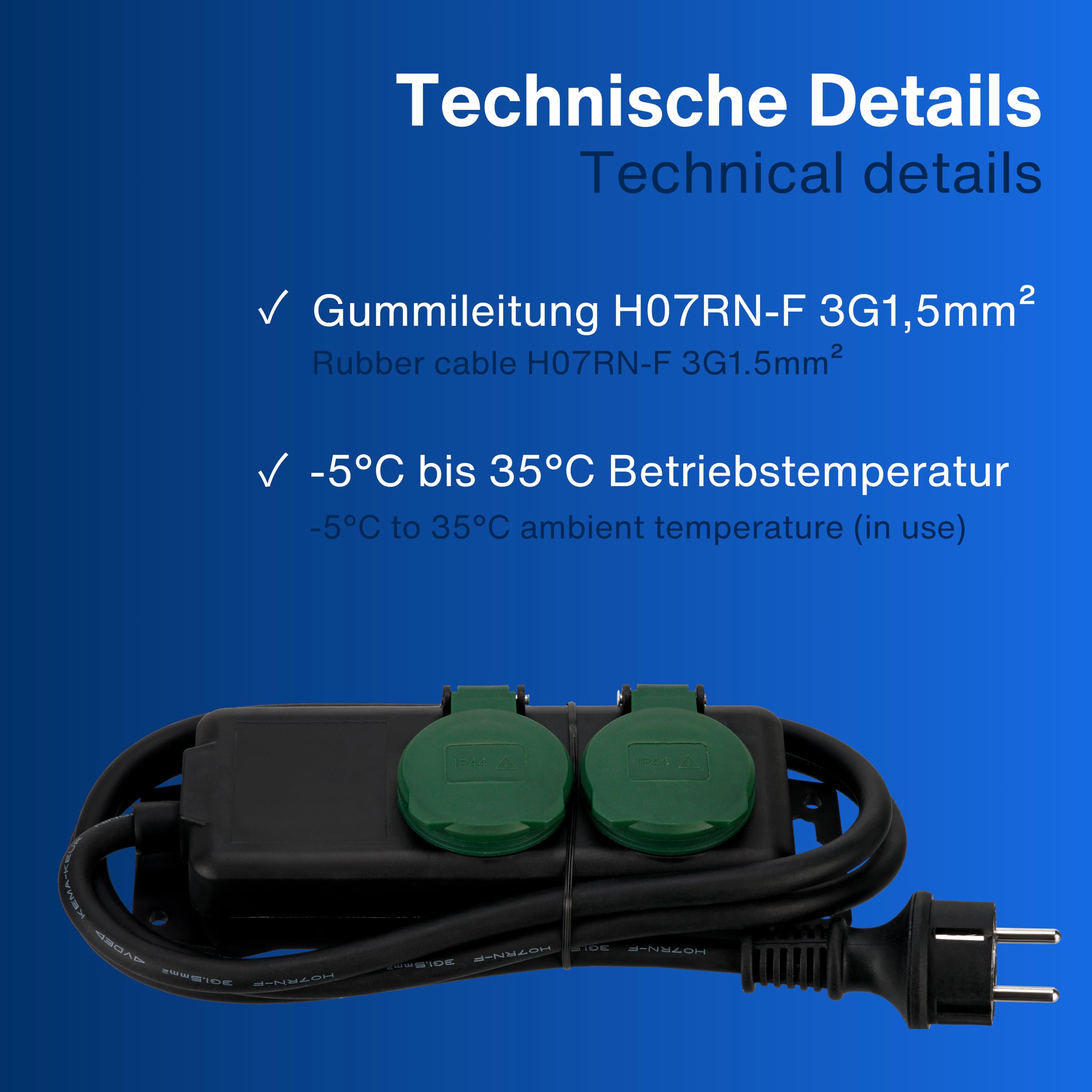Strom da, wo du ihn brauchst! Diese Schwabe Verteilersteckdose mit IP44 Schutz ist der Alleskönner für Baustelle, Garten und Werkstatt. Mit 3 Schutzkontaktsteckdosen (230V/16A) und selbstschließenden Klappdeckeln für maximale Sicherheit. Das 1,5m lange H07RN-F Kabel ist öl-, UV- und ozonbeständig (-30 bis +60°C). Perfekt für den harten Baustelleneinsatz. Einfache Wandmontage möglich. Made in Germany - Qualität die überzeugt! Ob für Profis oder Heimwerker - diese Steckdosenleiste hält, was sie verspricht.