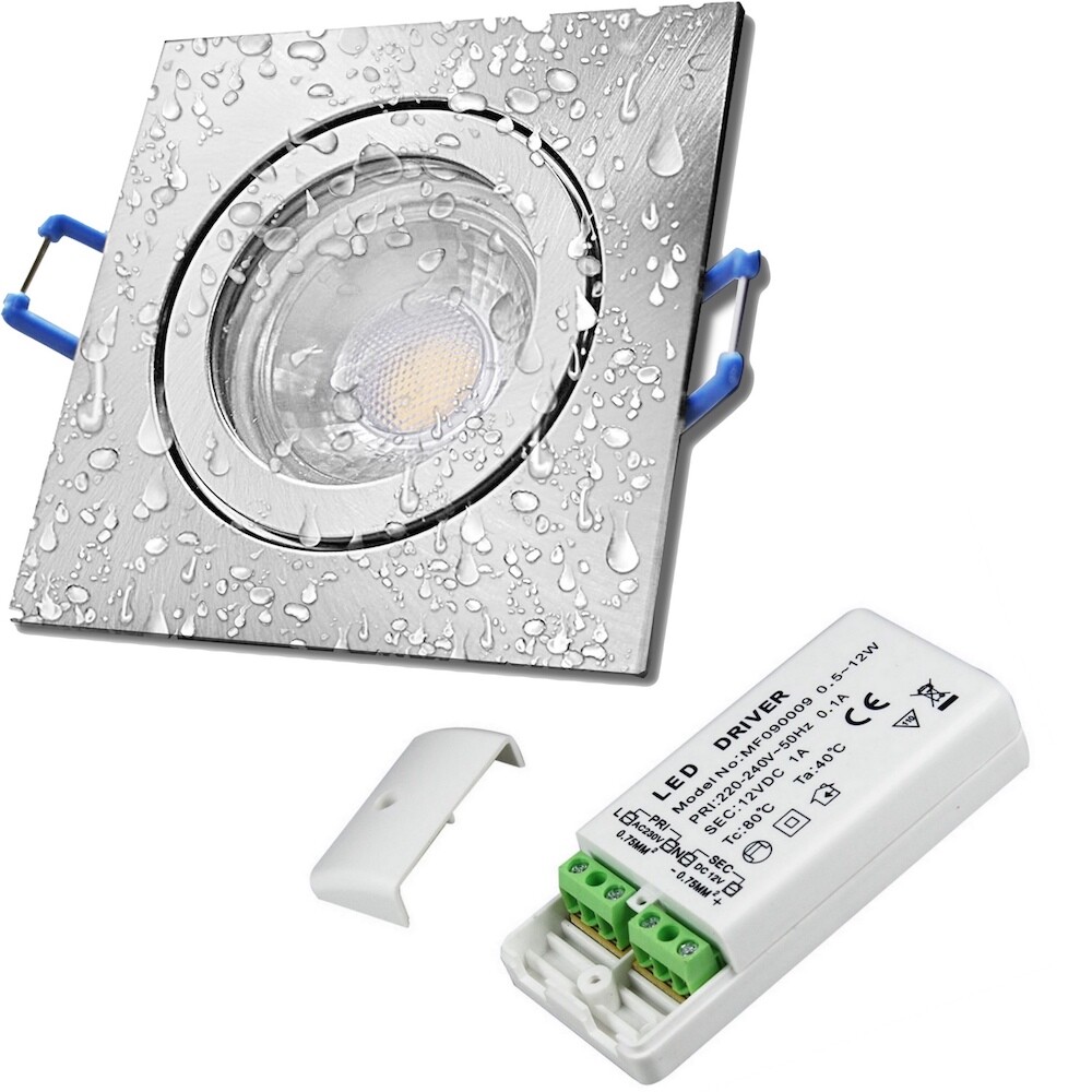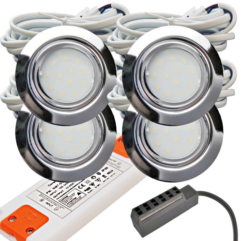LED Einbauspots 4er Set IP44 - 12V 4000K Neutralweiß, Inkl. Trafo & AMP-Stecker