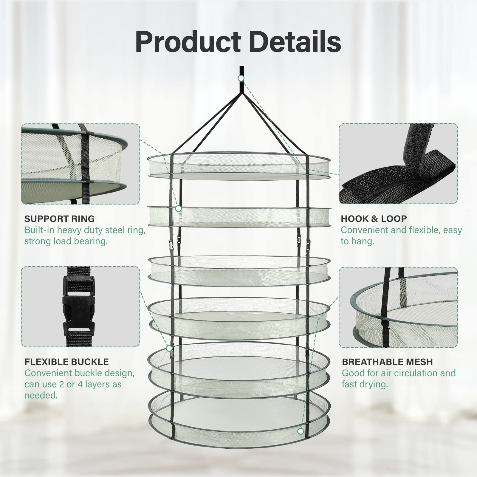 IPower 6-lagiges Kräuternetz 60cm - Faltbarer Trockengestell Mit Reißverschluss