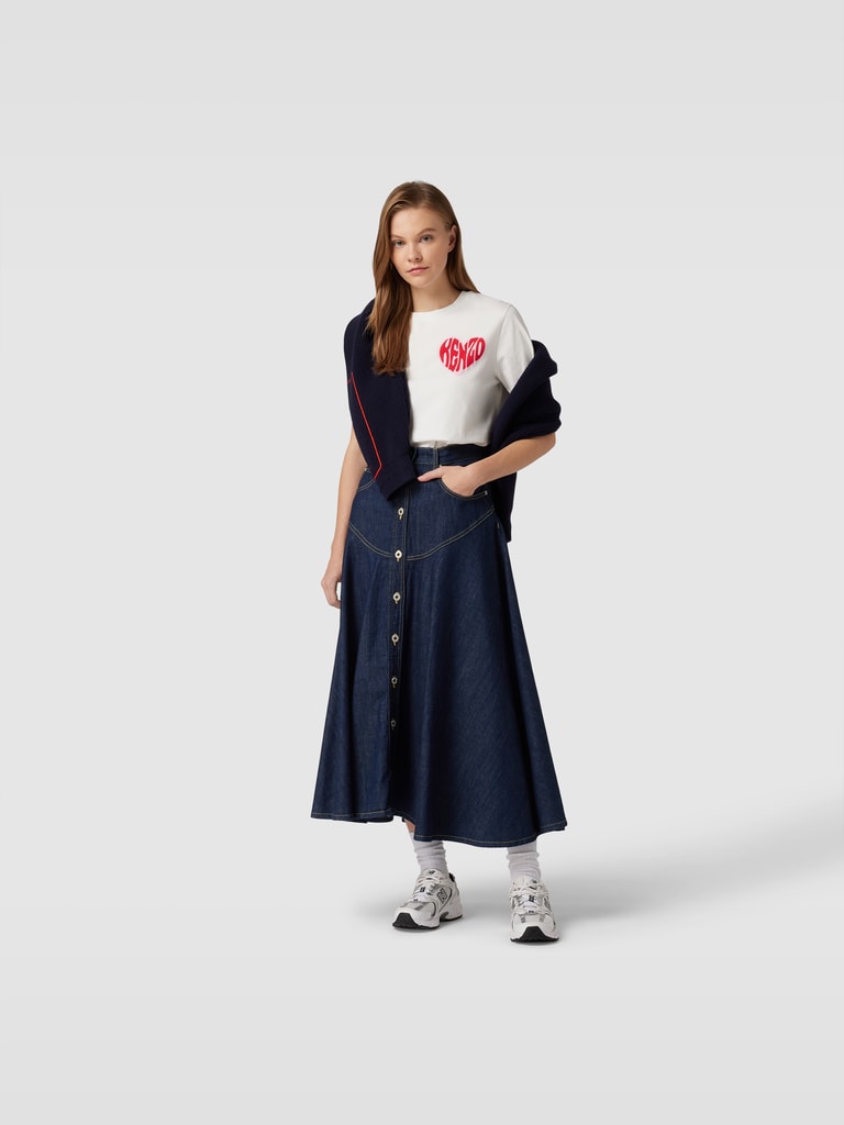 IQYU Damen Bluse & Jeansrock Set - 3 Liebesmuster Print Lässig