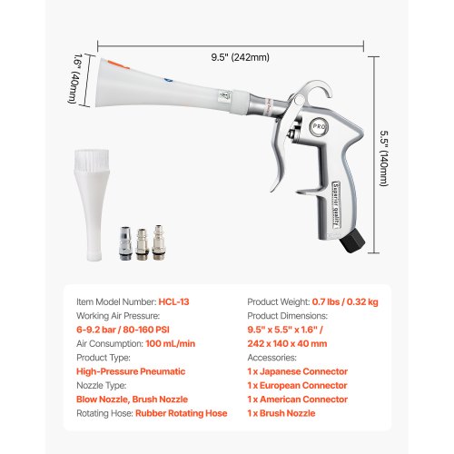 Mit Druckluft reinigen war noch nie so einfach! Diese Reinigungspistole aus Aluminiumlegierung und PE ist ein echter Alleskönner. Perfekt für 6-9,2 Bar Druckluft. Im Lieferumfang: Pistole, gelbes Handtuch, Schwenkschlauch, weiße und rote Bürste - alles dabei! Mit 29,5 × 14 × 5,5 cm handlich, aber kraftvoll. Entfernt Staub und Schmutz aus Auto-Innenräumen (Sitze, Teppiche, Decken!), von Haushaltsgeräten und in der Industrie. Der ergonomische Abzug liegt perfekt in der Hand. Umweltfreundlich, ohne Chemie. Spart Zeit und Nerven. Für Auto-Enthusiasten und Putzprofis gleichermaßen geeignet. Einfach anschließen und loslegen!