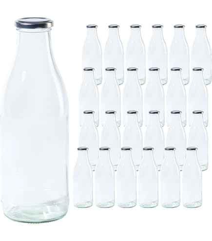 Total praktisch: 12 leere Glasflaschen à 200 ml - perfekt zum Abfüllen von allem, was flüssig ist! Ob selbstgemachter Saft, Öl, Likör, Saucen oder Sirup - hier passt alles rein. Die Schraubverschlüsse aus silbernem PP28-Material schließen sicher und sehen dabei noch edel aus. Das Glas ist robust und spülmaschinenfest (nur den Deckel bitte per Hand waschen). Maße: 17,5 cm hoch, 5,4 cm Durchmesser. Super auch als Geschenk oder Deko - macht immer was her! Umweltfreundlich, weil du Plastik vermeidest. Einfach befüllen, etikettieren, fertig! Für alle, die gerne kreativ sind und ihre Speisen und Getränke selbst machen wollen. Einfach, aber effektiv - so muss das!