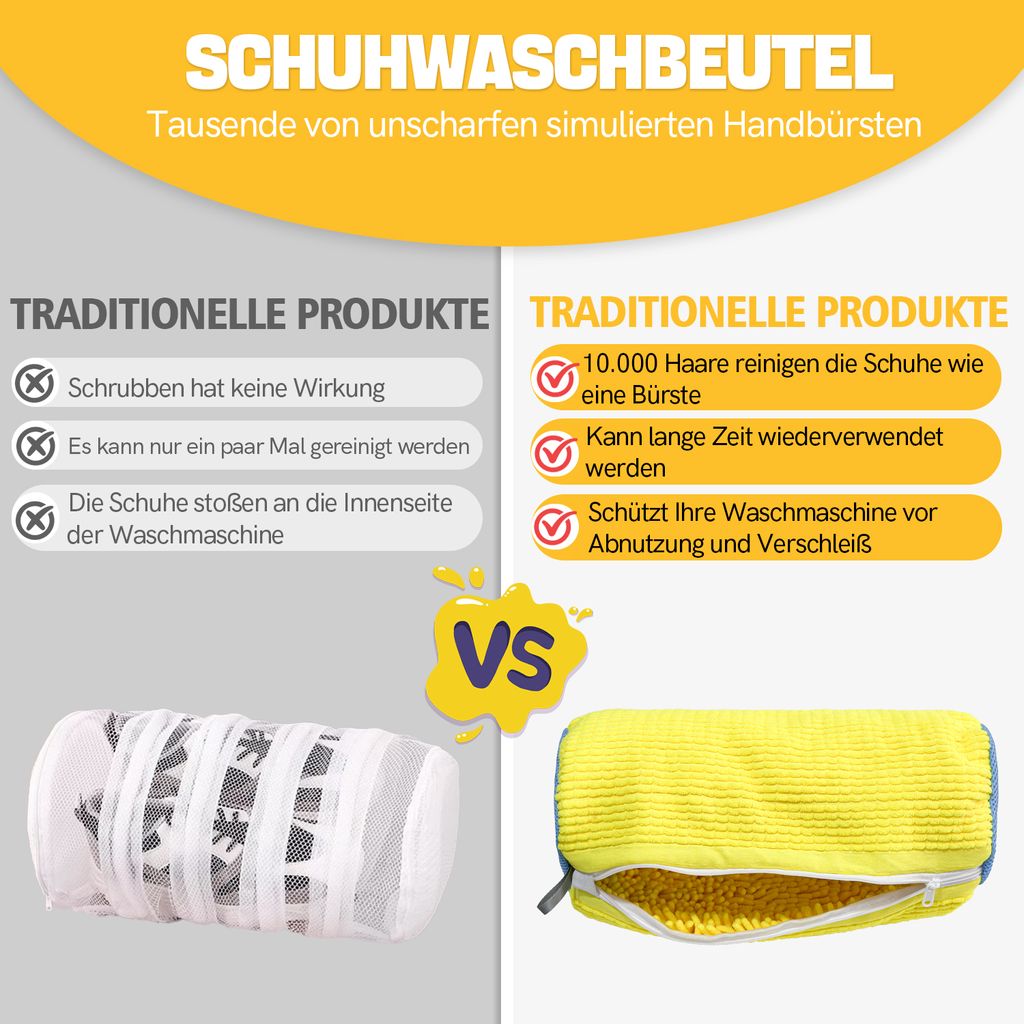 Endlich saubere Sneaker ohne Aufwand! Diese Waschbeutel sind ein echter Game-Changer! 2 Stück im Set - perfekt für deine Lieblings-Sneaker! Die integrierten Mikrofaser-Reinigungsfasern machen eine 360° Reinigung - deine Schuhe werden strahlend sauber! Gleichzeitig schützt der robuste Netzbeutel deine Schuhe vor Verformungen und deine Waschmaschine vor Beschädigungen! Mit ca. 19x39cm passen die meisten Schuhgrößen rein! Einfach Schuhe rein, Beutel zu und in die Maschine - kein lästiges Handwaschen mehr! Das Mesh-Material sorgt für optimale Wasserzirkulation - Schuhe werden gründlich sauber und trocknen schneller! Nie wieder verhedderte Schnürsenkel oder Kratzer an der Trommel! Deine Sneaker bleiben länger schön und deine Waschmaschine auch! Einfach mal probieren - du wirst nie wieder ohne waschen wollen!