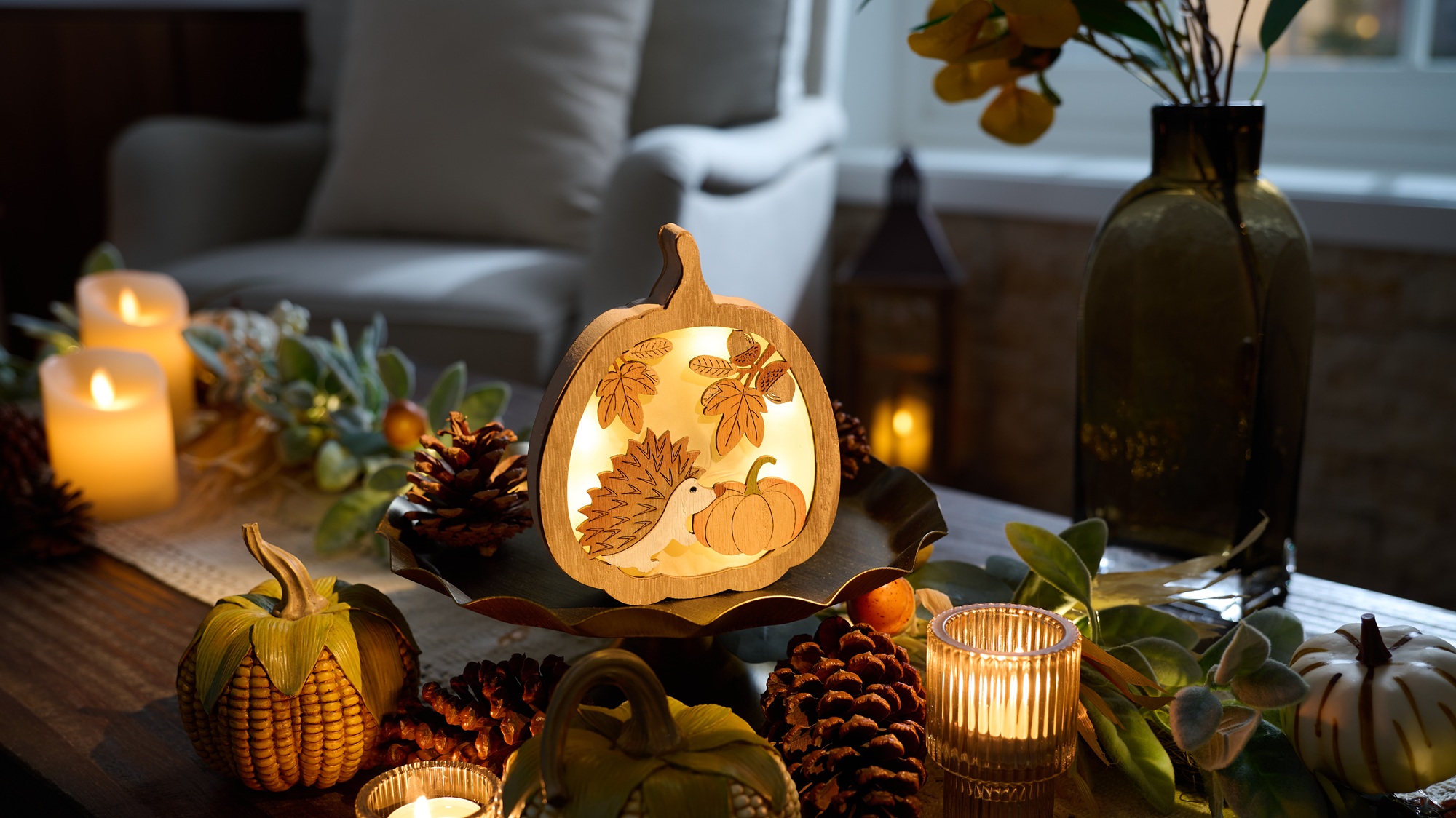 3D Holz LED Igel Leuchte - Herbstdekoration Mit Warmem Licht