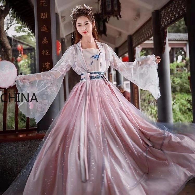 Hanfu Damen Kleid Im Chinesischen Stil - Vintage Kostüm Mit Stickerei, Oberteil & Rock Set