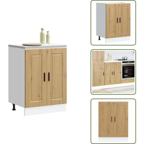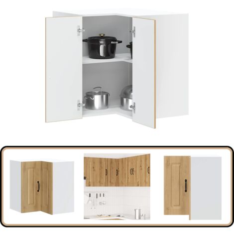 Endlich mehr Stauraum in der Küche! Dieser praktische Eckunterschrank nutzt die oft ungenutzte Ecke optimal aus. Im Design 'Artisan-Eiche' passt er zu vielen Einrichtungsstilen. Aus robustem Holzwerkstoff, feuchtigkeitsresistent und langlebig. Mit verstellbaren Füßen für unebene Böden. Tragfähigkeit bis 70kg - ideal für Töpfe, Geschirr und Küchengeräte. Einfach aufbauen und mit der mitgelieferten Wandhalterung sichern. Arbeitsplatte separat erhältlich. Macht deine Küche aufgeräumter und funktionaler - cleveres Design für mehr Ordnung!