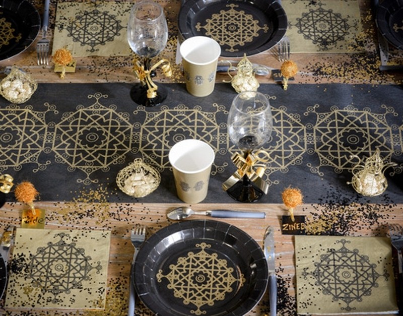Moderner Tischläufer Mit Geometrischem Muster In Orange/Schwarz - Herbstdeko Für Familientreffen