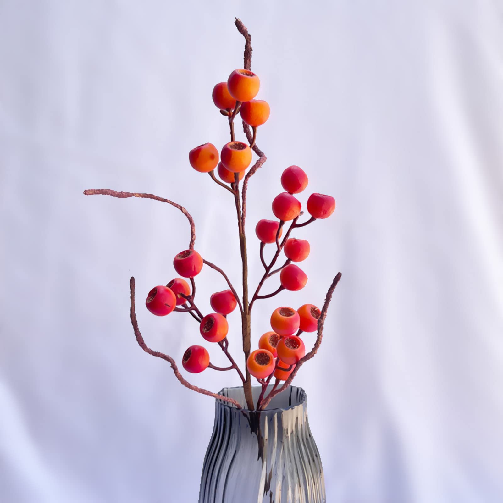 12 Künstliche Beeren Zweige In Orange - Winter & Weihnachts Deko | Für Kränze & Gestecke