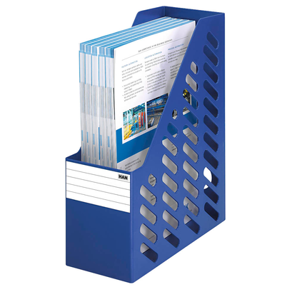 Schluss mit dem Chaos auf dem Schreibtisch! Der HAN Stehsammler KLASSIK ist dein neuer bester Freund für mehr Ordnung im Büro oder Homeoffice. In knalligem Rot sieht er nicht nur super modern aus, sondern ist auch mega praktisch. Das geniale Sicht- und Greifloch auf der Rückseite macht das Herausnehmen deiner Dokumente zum Kinderspiel - kein langes Gefummel mehr! Hergestellt aus hochwertigem, schwermetallfreiem Kunststoff, der richtig was aushält. Maße: 76 x 145 x 248 mm (B x H x T), hinten 320 mm hoch. Perfekt für alle deine A4-Unterlagen, Rechnungen, Briefe oder auch für deine Sammlung an Zeitschriften. Ob im Büro, im Kinderzimmer oder im Wohnzimmer - dieser Stehsammler bringt Struktur in dein Leben und sieht dabei noch richtig gut aus. Die stabile Bauweise sorgt dafür, dass er auch voll beladen nicht umkippt. Einfach aufstellen, Dokumente rein und sich über mehr Ordnung freuen! Der HAN Stehsammler - weil du Besseres verdient hast als Papierberge auf deinem Tisch.