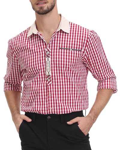Oktoberfest Herrenhemd Langarm - Karo Trachtenhemd In S-3XL Für Wiesn & Feste