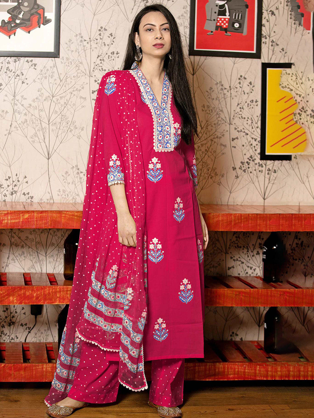 Suchst du was Besonderes für den nächsten Festtag? Dieses wunderschöne Kurta-Set in warmem Senfton wird dich begeistern! Aus weicher Viskose-Baumwoll-Mischung fühlt es sich super angenehm auf der Haut an. Das Set besteht aus einem langen Kurta mit dekorativem Druck, einer passenden Hose und einem eleganten Dupatta-Tuch. Mit seinem geraden Schnitt und dem schmeichelhaften V-Ausschnitt sitzt es perfekt. Die 3/4-Ärmel und die wadenlange Länge machen es zum absoluten Allrounder - ob für traditionelle Feste, Partys oder einfach für den Alltag. Die Größen sind gut sortiert: Kurta von S (91,4 cm) bis XXL (111,8 cm) und Hose von S (71,1 cm) bis XXL (91,4 cm). Einfach in der Größentabelle nachschauen und die perfekte Passform finden! GoSriKi steht für qualitativ hochwertige indische Kleidung, die nicht nur gut aussieht, sondern sich auch gut trägt. Perfekt für Hochzeiten, Diwali, Eid oder einfach wenn du mal was Besonderes anziehen möchtest. Das Set ist pflegeleicht und behält seine schöne Farbe - ein echter Hingucker in deinem Kleiderschrank!