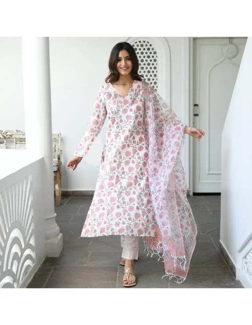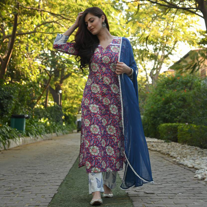 GoSriKi Damen Kurta Set In Senf - Mit Hose & Dupatta, Viskose-Baumwolle