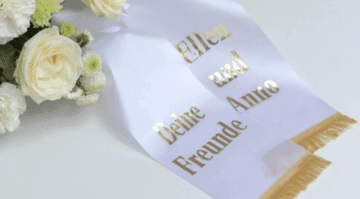Würdevoller Abschied mit persönlicher Note. Diese bedruckte Trauerschleife aus 100% wetterfestem Material eignet sich perfekt für Trauerkränze und Gestecke. Erhältlich in verschiedenen Breiten von 7,5cm bis 17,5cm. Seit 1947 spezialisiert auf hochwertige Kranzschleifen mit wetterfestem Druck. Beidseitig bedruckbar mit persönlichen Widmungen wie 'Als letzter Gruß' oder individuellen Texten. Die Schleifen behalten auch bei Regen ihre Form und Lesbarkeit. Einfach am Kranz befestigen und so eine persönliche letzte Ehrung gestalten. Weitere individuelle Wünsche können direkt angefragt werden.