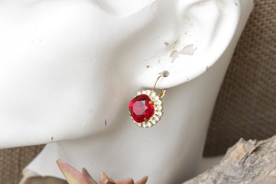 Inateannal Kristall Ohrkletterer Gold Mit Rubin - Elegante Manschetten Ohrringe