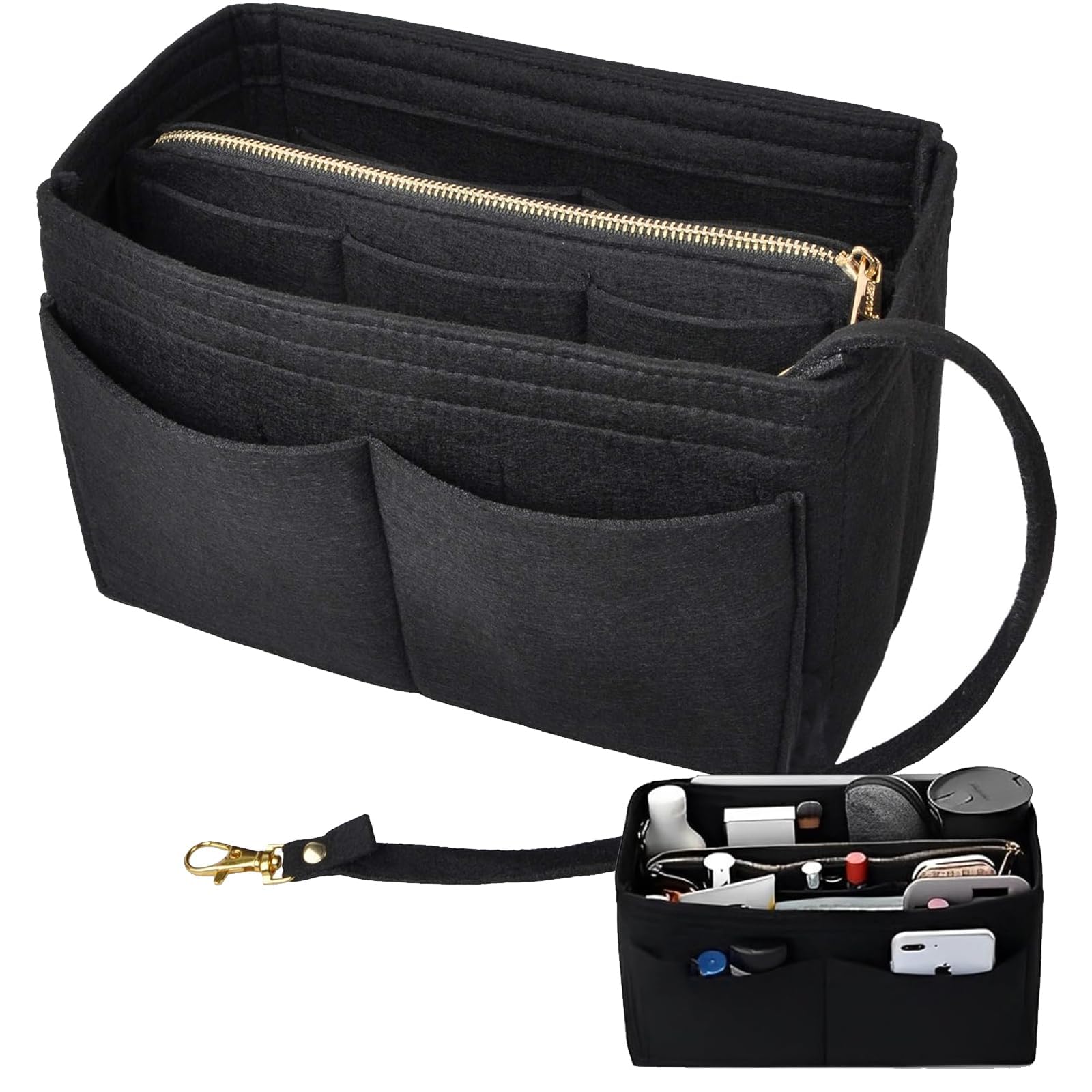 Endlich Ordnung in der Handtasche! Diese praktischen Filz-Organizer sorgen dafür, dass du alles sofort findest und deine Tasche in Form bleibt. Hergestellt aus robustem yet weichem Filzmaterial, schonen sie deine Lieblingstasche und sind superleicht.\\n\\nPraktisches Design: 3 Außentaschen, 5 kleine Innentaschen plus eine offene Innentasche bieten Platz für alles, was du täglich brauchst - Smartphone, Schlüssel, Lippenstift, Sonnenbrille oder Ladekabel. Der Metallknopf hält alles sicher verschlossen, selbst in offenen Taschen.\\n\\nPerfekt für unterwegs: Mit den Maßen 30x20x10 cm und 18x17x7 cm passen die Organizer in die meisten Handtaschenmodelle. Das leichte Material macht sie ideal für den täglichen Einsatz - kein zusätzliches Gewicht, aber maximale Ordnung!\\n\\nTolles Geschenk: Ob für Freundinnen, Familie oder Kolleginnen - diese Organizer sind sowohl praktisch als auch stylisch. Die graue Farbe passt zu nahezu jeder Handtasche und das hochwertige Filzmaterial ist langlebig und verblasst nicht.\\n\\nEinfache Handhabung: Just alles reinpacken, Organizer in die Tasche stellen und fertig! Nie wieder langes Suchen in der Handtasche. Perfekt für Beruf, Freizeit oder Reisen - behalte immer den Überblick über deine Sachen!