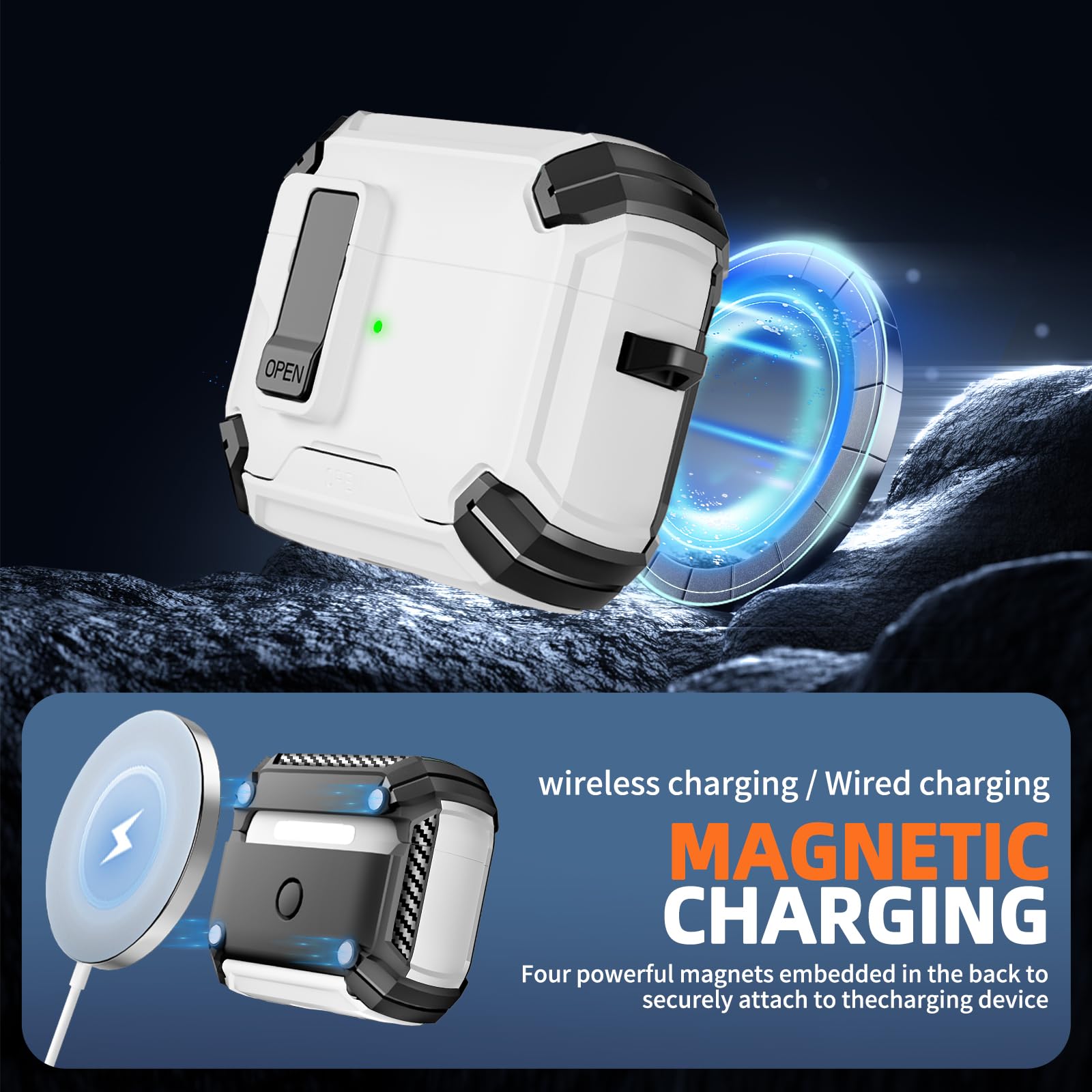 Geniale 2-in-1 Lösung für deine AirPods Pro! Diese Hülle hat ein automatisches Sicherheitsschloss - schützt vor versehentlichem Öffnen. Kompatibel mit AirPods Pro 1./2. Gen und USB-C Ladecase (2023). Das Besondere: Öffnest du das Schloss, wird es zum praktischen Handy-Ständer! Perfekt für Videos, Filme oder Video-Calls. Inklusive Reinigungsstift mit Mikrofaserbürste für gründliche Ohrstöpsel-Pflege. MagSafe kompatibel für kabelloses Laden. Einfache magnetische Montage. Mach deine AirPods Pro sicher und praktisch zugleich! Auch ein super Geschenk für Apple-Fans. Schütze deine teuren Kopfhörer stylisch!