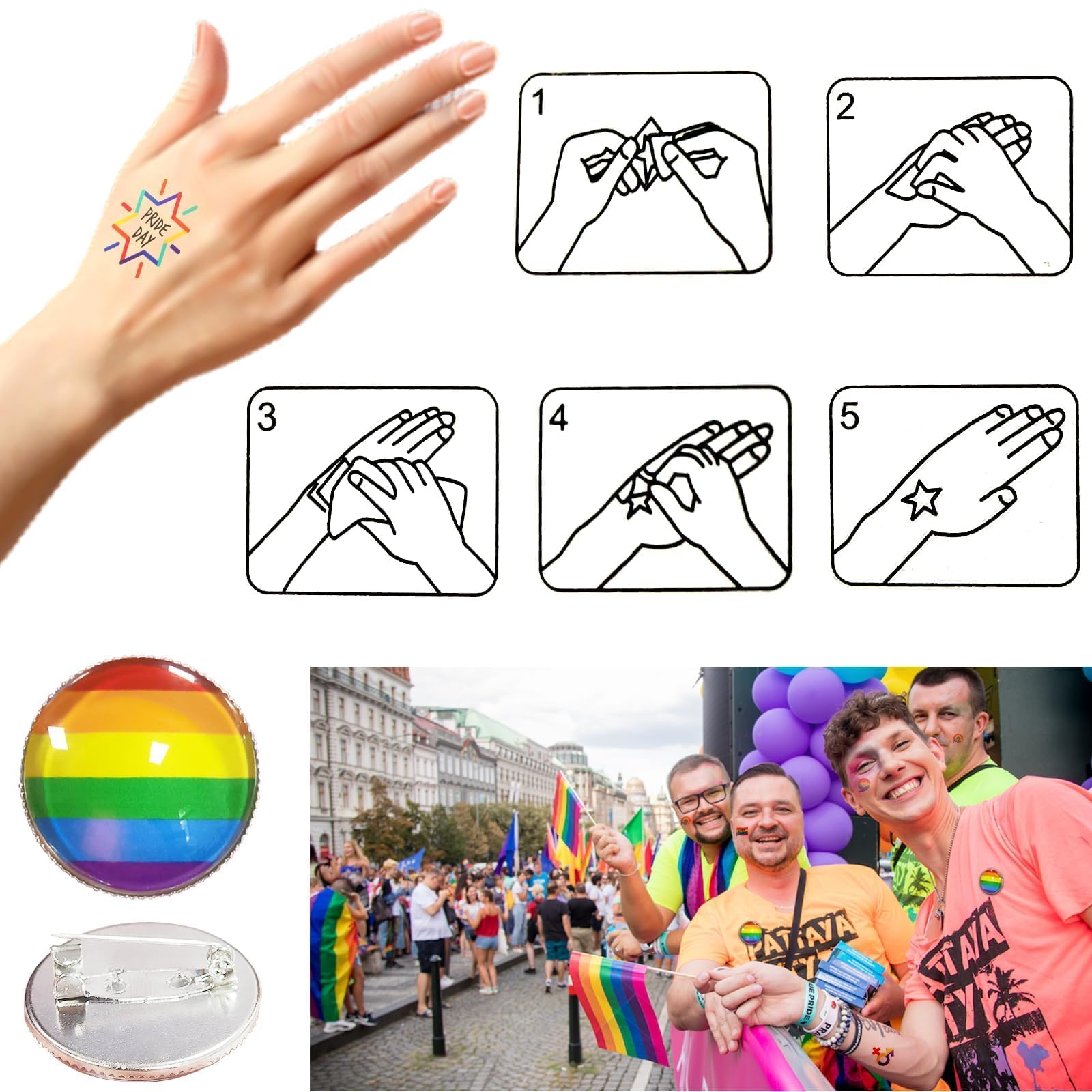 Progress Pride Flag Set - Inklusive Handflaggen, Sticker & Tattoos Für LGBTQ+ Feiern