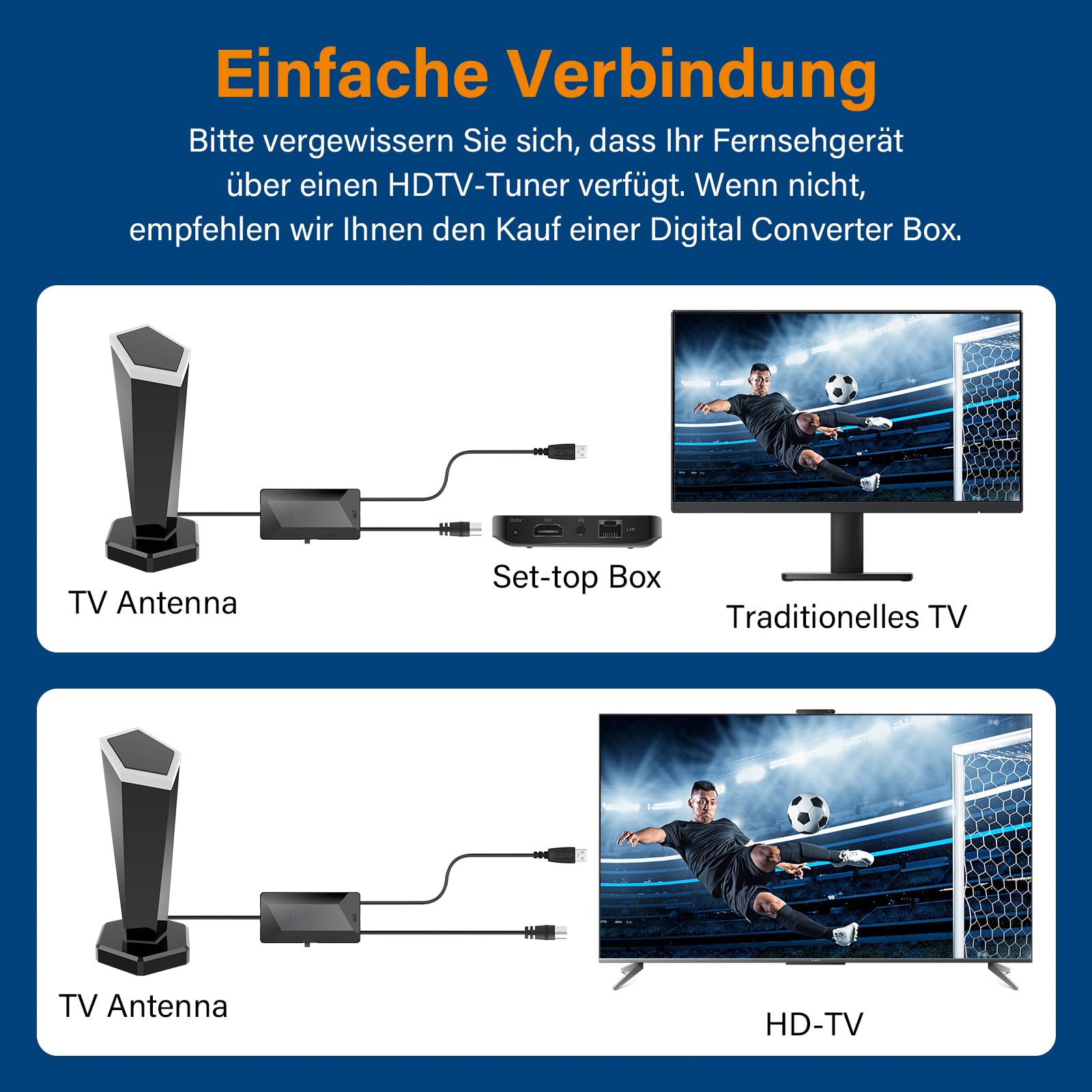 DVBT2 Antenne Mit Verstärker 420km - Innenantenne Für 4K Fernseher Mit Magnetfuß