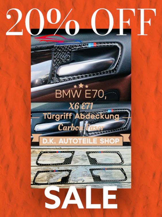 Diese Türgriff-Abdeckung macht deinen BMW X5 oder X6 (E70/E71/E72 2007-2013) wieder wie neu! Perfekter Ersatz für abgenutzte oder beschädigte Innengriffe. Aus robustem, leichtem Material - wasser- und sonnenbeständig, verformt sich nicht. Einfache Installation - kein Profi nötig, passt perfekt wie das Original. Verschönert den Innenraum sofort - sieht aus wie frisch vom Werk. Liegt angenehm in der Hand - verbessert das Fahrerlebnis spürbar. Umweltfreundlich und langlebig - hält auch bei intensiver Nutzung. Passt für vordere und hintere Türen - kompletter Satz verfügbar. In verschiedenen Farben erhältlich - passend zu deinem Interieur. Stilvolles Design fügt sich perfekt ein - kein Fremdkörper im edlen BMW-Innenraum. Einfach einbauen und sich wieder wie in einem neuen BMW fühlen - Qualität die überzeugt!