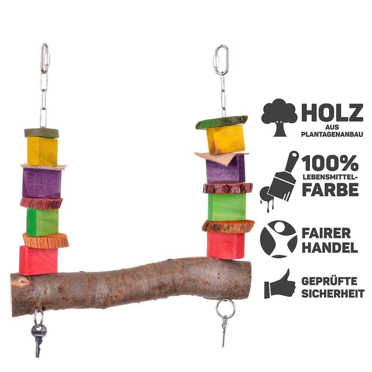 Beschäftigung für clevere Vögel! Dieses Lernspielzeug fordert deinen Papagei oder Sittich geistig heraus und beugt Langeweile vor. Aus natürlichem Holz gefertigt, fördert es den natürlichen Erkundungstrieb deines Vogels. Verstecke Leckerlis in dem Spielzeug und watch dein Vogel beim knobeln zu! Das kompakte Design (ca. 15x20cm) passt in jeden Käfig ohne viel Platz wegzunehmen. Besonders praktisch: Die stabile Konstruktion wackelt nicht und ist einfach zu installieren. Für Nymphensittiche, Unzertrennliche und mittelgroße Papageien geeignet. Mach den Käfigalltag interessanter und stärke die Bindung zu deinem gefiederten Freund!