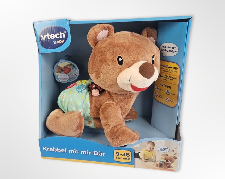 So ein süßer interaktiver Hund von VTech - dein Kind wird ihn lieben! Komplett mit praktischer Transporttasche, damit der Welpe überall mit hingenommen werden kann. Im Set sind 6 Zubehörteile enthalten: Schüssel, Kamm, Knochen, Wasserflasche, Smartphone und Süßigkeitenbox - alles hat seinen Platz in der Tasche. Zwei Spielmodi (Imitation und Lernen) mit 5 leuchtenden Tasten bringen deinem Kind Zahlen, Formen und Farben bei. Das Nachahmungsspiel fördert die Fantasie und die vielen Manipulationen verbessern die Feinmotorik. Sogar personalisierbar - schreib den Namen deines Kindes auf das Etikett! Mit 2 Liedern und 15 Melodien für musikalische Unterhaltung. Automatische Abschaltung und Lautstärkeregler schonen die Batterien (die sind sogar im Lieferumfang enthalten). Perfekt für Kinder von 12-36 Monaten - ein pädagogisch wertvolles Spielzeug das lange Freude macht. Einfach auspacken und losspielen - der Hund wartet schon auf seinen neuen besten Freund!