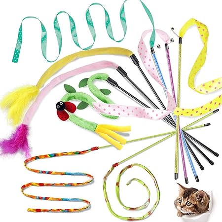 14-teiliges Katzenspielzeug Set - Interaktives Spielzeug Mit Federn, Bällen & Mäusen Für Kätzchen