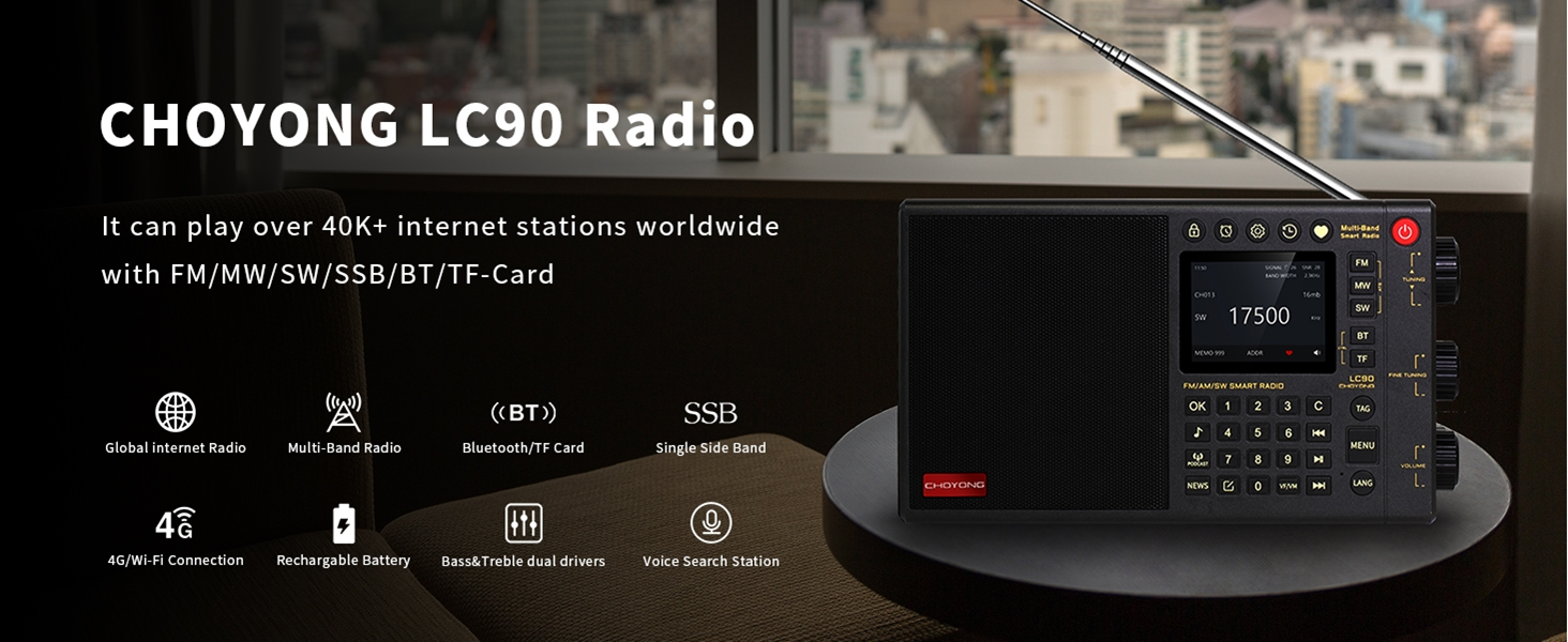Choyong LC90 Internetradio | WLAN & 4G | 40.000 Sender | 5000 MAh Akku | Tragbarer Lautsprecher