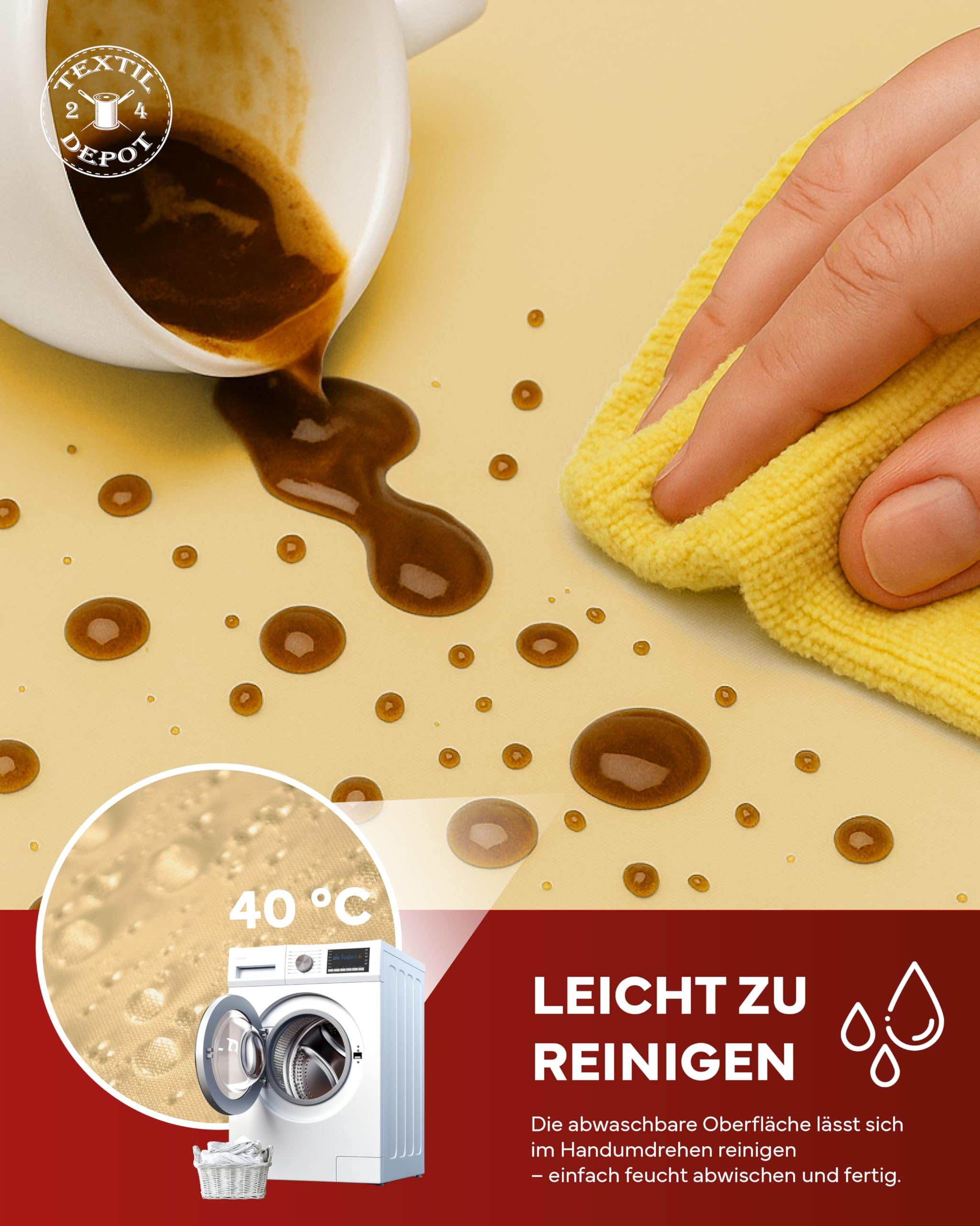 Elegant und praktisch zugleich! Diese invitta Stoffserviette in Grau mit Goldakzenten verwandelt jeden Tisch in ein stylisches Highlight. Aus hochwertigem 100% Polyester mit 200g/m² Gewicht - robust und langlebig. Der Clou: Der innovative Lotuseffekt lässt Flüssigkeiten einfach abperlen! Flecken einfach mit Papiertuch aufnehmen, kein Einziehen. Die luxuriöse 5cm breite Gold-Bordüre mit präzisen Kuvertecken (Briefecken) unterstreicht die hochwertige Verarbeitung. Maschinenwaschbar, schnelltrocknend und knitterarm - super pflegeleicht. Perfekt für festliche Anlässe, Dinnerpartys oder als elegantes Alltags-Accessoire. Maße: 50x50cm. Ein absoluter Blickfang der Design und Funktionalität perfekt vereint. Mach deine Tafel zu etwas Besonderem!