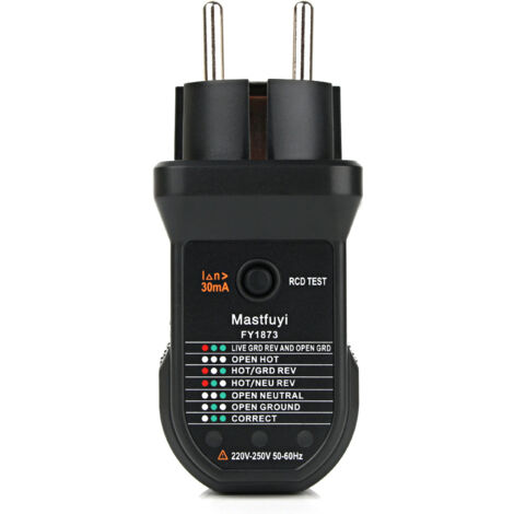 Sicherheit geht vor! Mit diesem praktischen Steckdosenprüfer checkst du im Handumdrehen, ob deine Steckdosen richtig verkabelt sind und sicher funktionieren.\n\nDas LCD-Display zeigt dir live die Spannung an - bis zu 250 V. So siehst du sofort, ob alles in Ordnung ist. Die LED-Anzeigen leuchten auch bei starkem Licht oder im Dunkeln gut sichtbar.\n\nEinfach in die Steckdose stecken und ablesen. Der Prüfer zeigt dir verschiedene Fehler an: offener Schutzleiter, offener Neutralleiter, vertauschte Phasen und mehr.\n\nBesonders praktisch: Die One-Click Test-Funktion prüft den FI-Schutzschalter. Einfach Knopf drücken und sehen ob die Sicherung auslöst - so weißt du, dass der Schutz vor Stromschlag funktioniert.\n\nKlein und handlich - passt in jede Werkzeugtasche. Perfekt für Heimwerker, Hausmeister oder auch professionelle Elektriker. Keine Vorkenntnisse nötig, wirklich jeder kann ihn bedienen.\n\nMit EU-Stecker für deutsche Steckdosen. Aus robustem ABS-Material gebaut, das auch häufigen Gebrauch aushält.\n\nSpannungsbereich: Bis 250 V\nAnzeige: LCD Display + LEDs\nGröße: 56 x 56 x 44 mm\n\nSchlaf ruhig - mit der Gewissheit, dass deine Steckdosen sicher sind!