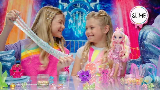 So funktioniert's: Nimm den klaren Schleim und misch ihn mit den vier glitzernden Farben nach deinem Geschmack. Dann füllst du die speziellen Puppenbeine schichtweise - und schon hat Iris einzigartige, bunte Beine! Der Kreativität sind keine Grenzen gesetzt.