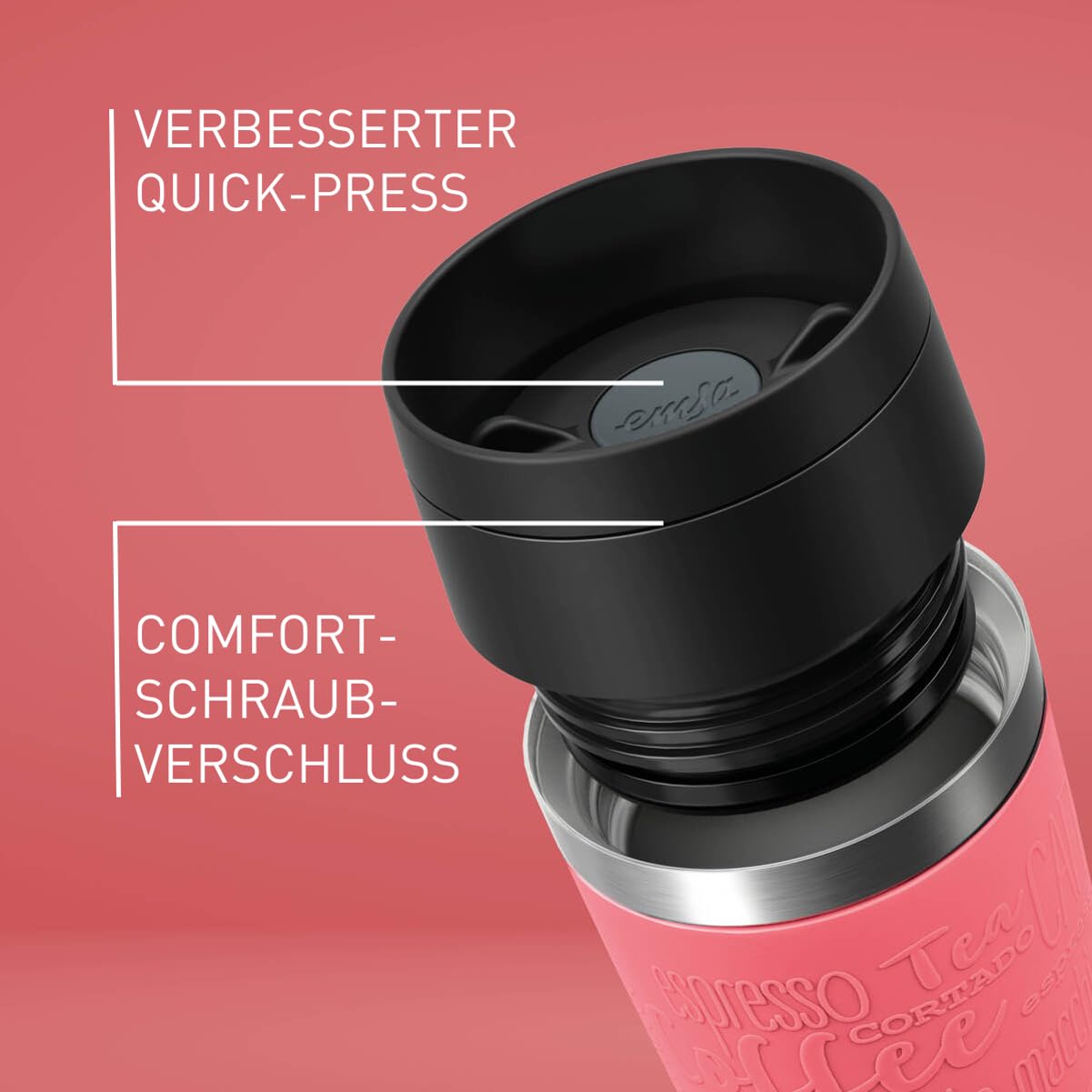 Perfekt für unterwegs: Der Emsa Travel Mug Classic Twist Isolierbecher mit 0,36 Liter Fassungsvermögen! Der Comfort-Schraubverschluss macht das Befüllen leicht, und der Quick-Press-Verschluss ermöglicht dir einen schnellen Schluck - ohne Auslaufen. Der 360°-Deckel lässt dich von allen Seiten trinken, und die Isolierleistung hält Heißgetränke 4 Stunden warm und Kalte 8 Stunden kühl. Aus robustem Edelstahl, spülmaschinenfest und in cremeweiß - ideal für die Arbeit, Auto oder Reisen. Dein treuer Begleiter für jeden Tag - stylisch und praktisch!