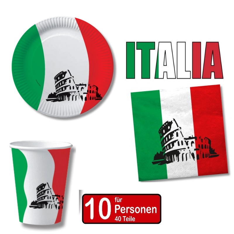 56-teiliges Party-Set Italien - Für 10 Personen - Teller, Becher, Servietten, Trinkhalme