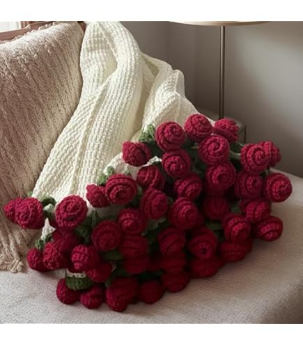 Iyoimono Blumenstrauß Decke - Handgestrickte Häkeldecke Als Rosenstrauß (110x110cm)