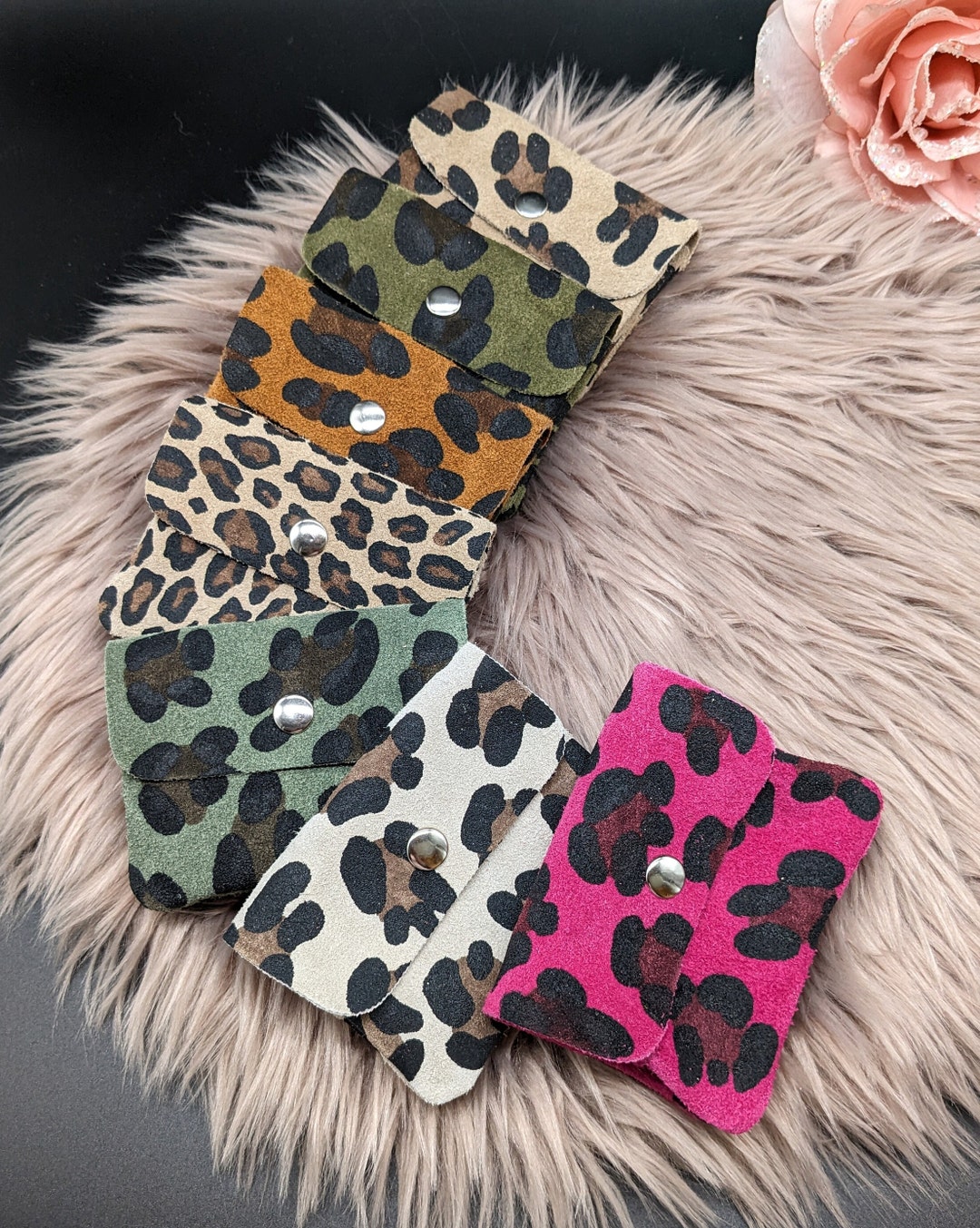 J26 Mini Geldbörse Aus Rauleder - Leopardenprint Unisex Portemonnaie