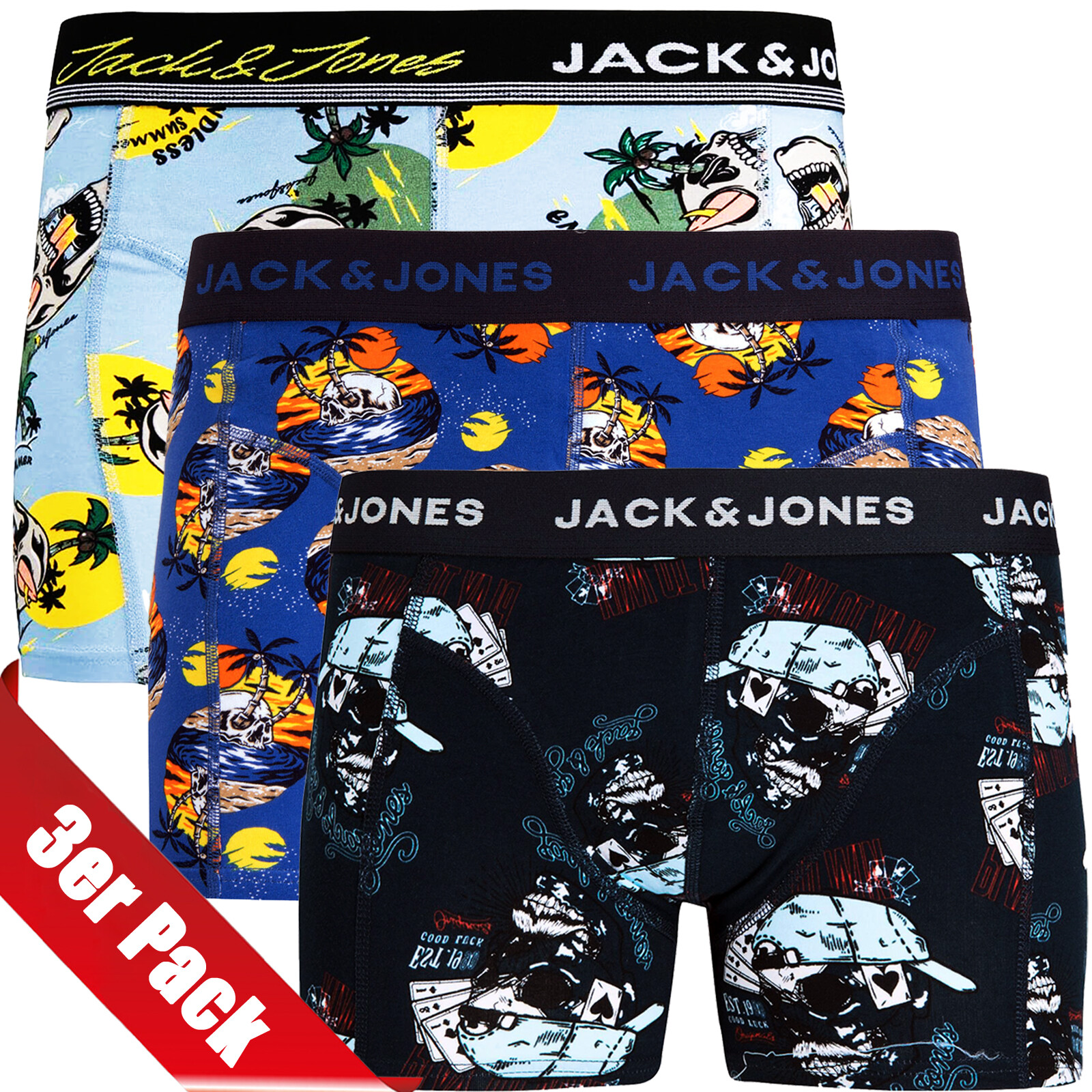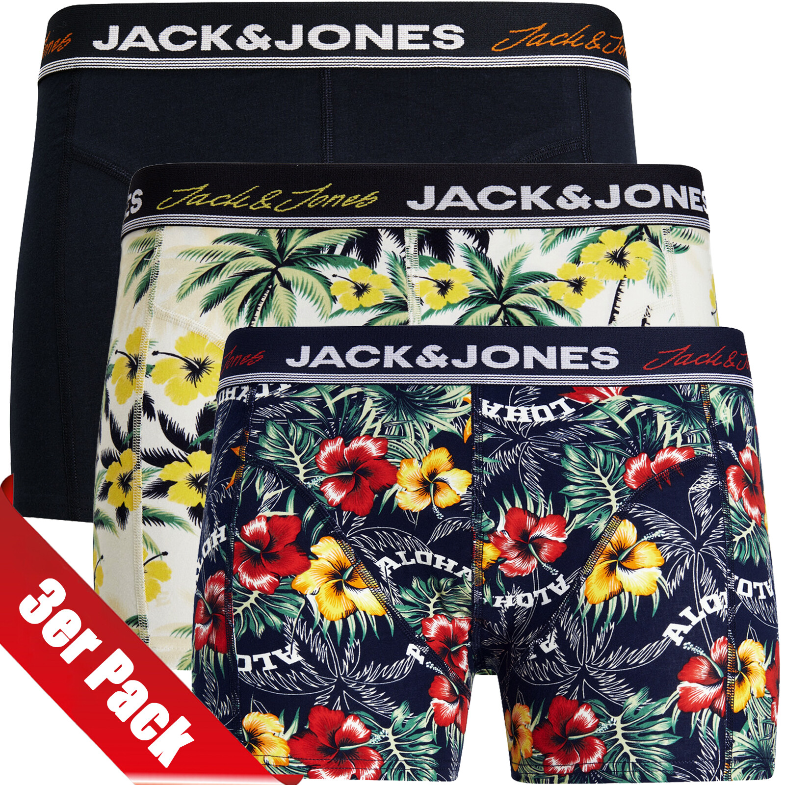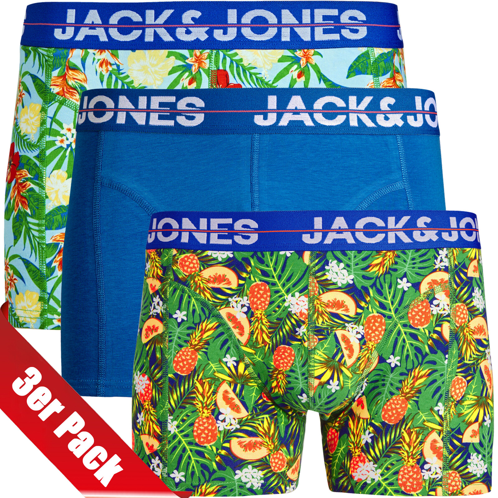 Bequeme Boxershorts von JACK & JONES im praktischen 3er-Pack! Aus weichem Baumwollmix (95% Baumwolle, 5% Elasthan) für optimalen Tragekomfort. Elastischer Bund mit dezentem Markenlogo. Trunks-Passform für perfekten Sitz. Erhältlich in vielen Größen von S bis 8XL - für jeden die richtige Passform. Ideal für den Alltag, Sport oder einfach zum Relaxen. Atmungsaktiv und hautfreundlich. Perfekte Basics für jeden Tag - einfach in den Schrank legen und immer die richtige Unterwäsche parat haben. Macht deine Unterwäsche-Kollektion komplett mit stylischer und bequemer Qualität!