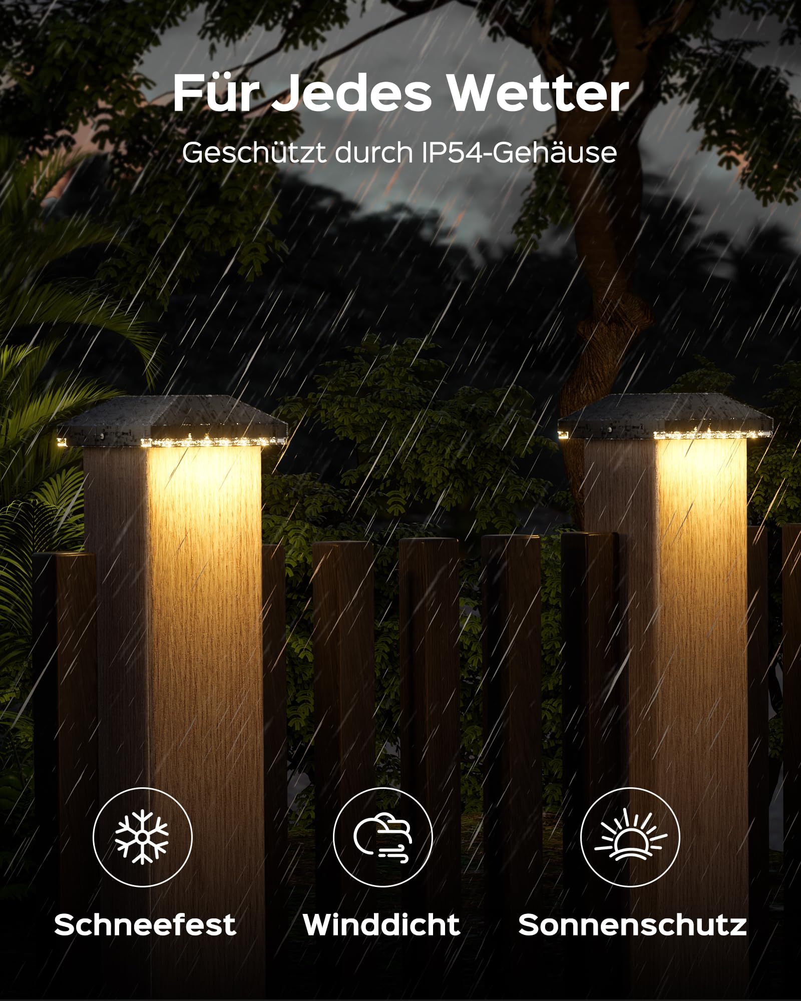 JACKYLED Solar Pfostenkappen - 4er Set Für Zaunpfosten 7x7 Bis 10x10 Cm