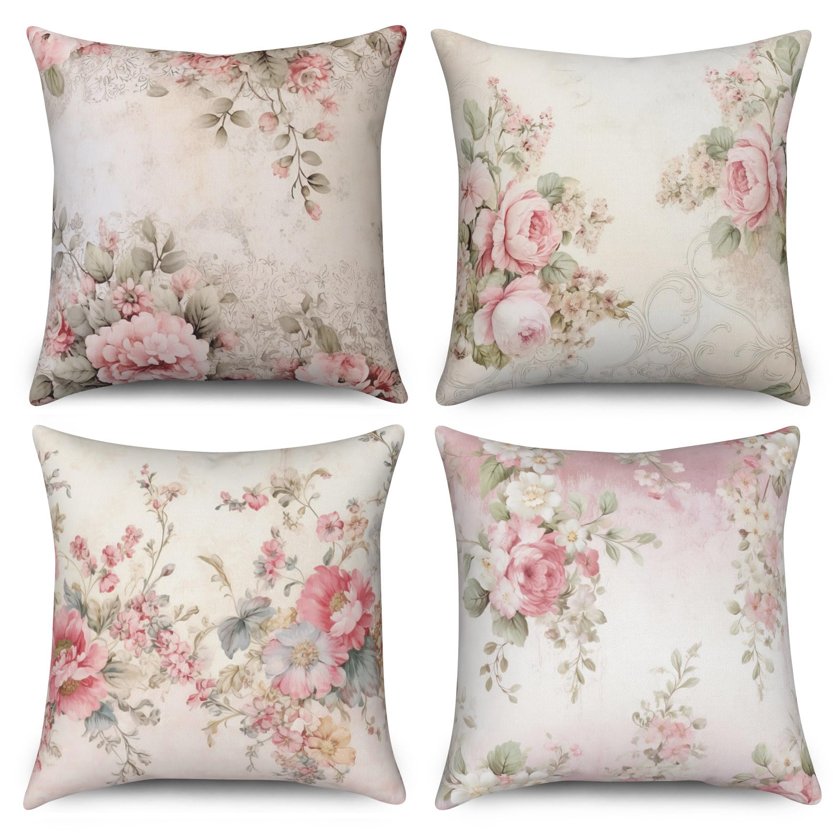 JANGYUHH 2er Set Kissenbezüge 50x50cm - Abstrakte Blumen Vintage Design
