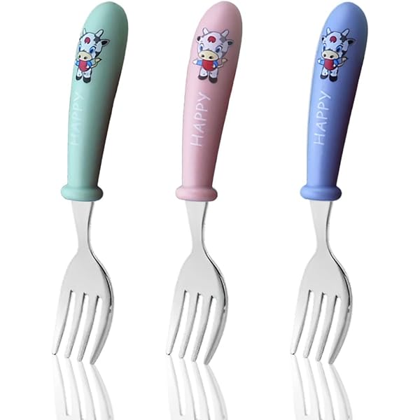 JEYORZY 3-teiliges Baby Besteckset - Silikon Griffe Edelstahl Anti-Choke
