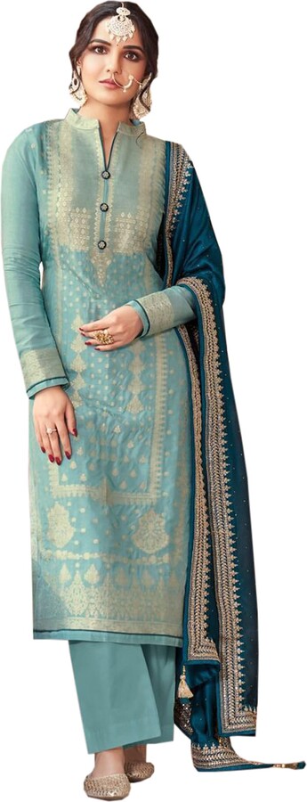 JIVRAJ Salwar Kameez Damen - Indisches Kleid Georgette Mit Stickerei Größe 46