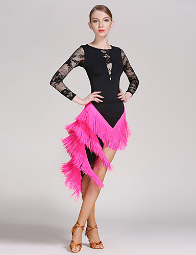 JIZYO Damen Tanzanzug Mit Fransen & Strass - Eiskunstlauf & Latein Tanz Kostüm