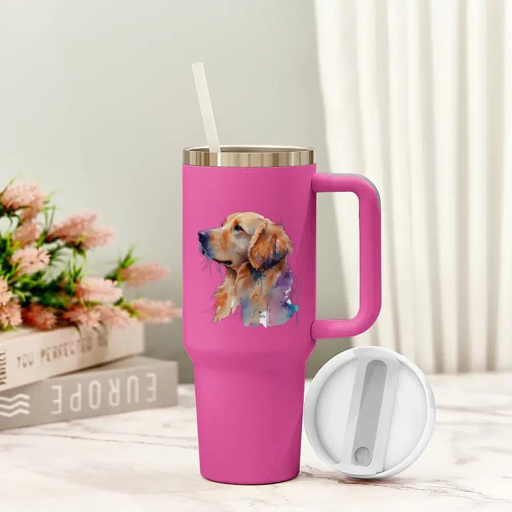 JKLQWH Isolierbecher 1,2L Mit Griff - Golden Retriever Design (Edelstahl, Vakuumisoliert)