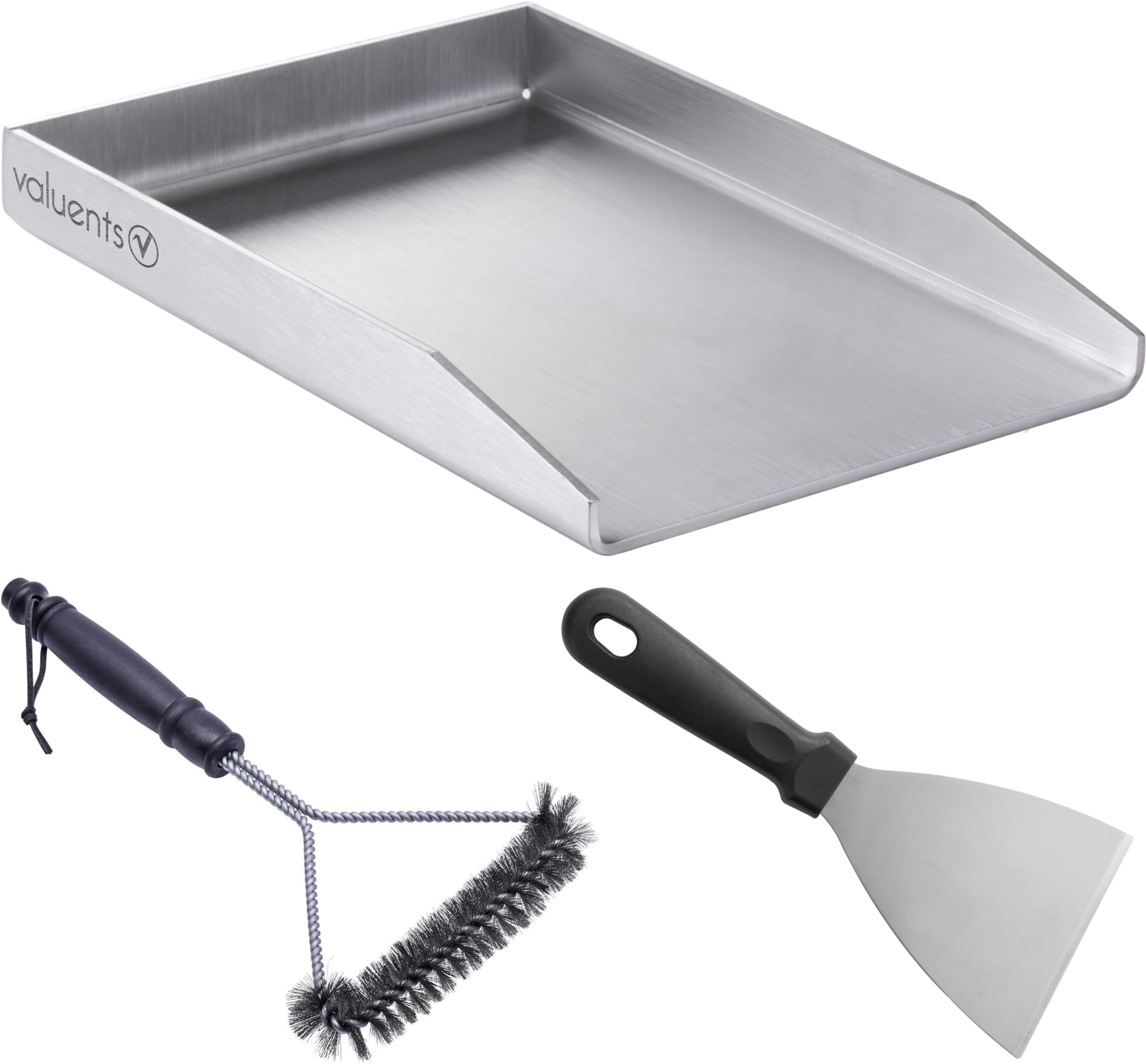 JRUKM Grillplatte Edelstahl 40x30cm - Plancha Für Gasgrill & Kohlegrill Mit Abnehmbaren Griffen