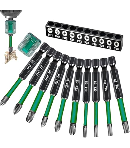 Boah, diese 9 magnetischen Schraubendreher-Bits von JXAXD sind der Hammer! Jeder Bit hat eine ultra-starke Magnetspitze, die Schrauben sicher festhält - kein Verlieren mehr, kein Abrutschen. Super praktisch für alle Heimwerker und Profis. Die Bits sind aus robustem K5-Stahl und halten auch starke Belastungen aus. Besonders der PH2-Bohrer ist für Schlagbohrer gemacht und super langlebig. Die Größen sind vielfältig: 25 mm, 50 mm, 65 mm, 70 mm, 75 mm, 90 mm, 100 mm, 120 mm und 150 mm. Egal ob du Möbel aufbaust, Elektroarbeiten machst oder einfach nur was reparieren willst - hier findest du den passenden Bit. Die Anti-Rutsch-Greifzähne sorgen dafür, dass du festen Halt auf den Schraubenköpfen hast. Im Lieferumfang sind sogar Arbeitsschutzhandschuhe dabei. Einfach in den Akkuschrauber stecken und loslegen - so einfach geht's. Perfekt für jede Werkstatt und jeden Haushalt. Mit diesem Set bist du für alle Schraubarbeiten bestens ausgerüstet!