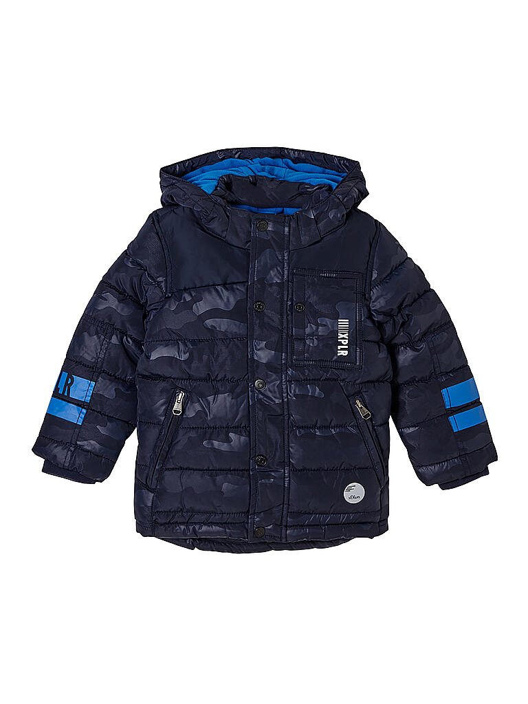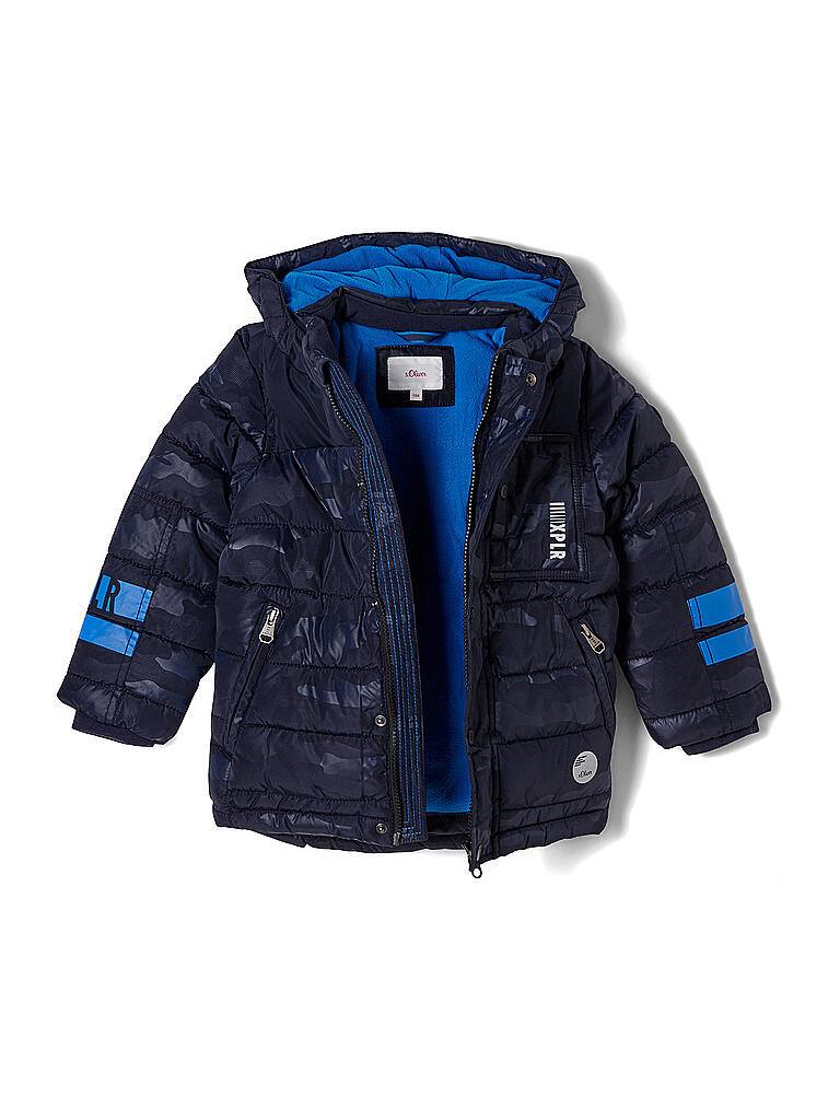 Perfekt für kalte Tage! Diese s.Oliver Jungenjacke hält warm und sieht dabei super stylisch aus. Mit wärmender Wattierung und weichem Fleece-Futter ist sie ideal für Herbst und Winter. Die praktische Kapuze ist fest angenäht und gefüttert. Ärmel mit Gummibündchen sorgen für perfekten Sitz und halten die Kälte draußen. Regular Fit bietet genug Bewegungsfreiheit zum Spielen. Mit Reißverschluss und Reißverschlusstasche für kleine Schätze. Allover-Muster macht sie zum echten Hingucker auf dem Spielplatz. Rückenlänge bei Größe 104: 45cm. Aus hochwertiger Webware - robust und langlebig. Ideal für Schule, Kindergarten oder Outdoor-Abenteuer! Ein Must-Have für jede Jungen-Garderobe!