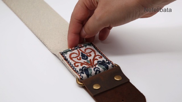 Gitarrengurt Jacquard Stickerei - Baumwolle Mit Lederenden Für Bass & Gitarre
