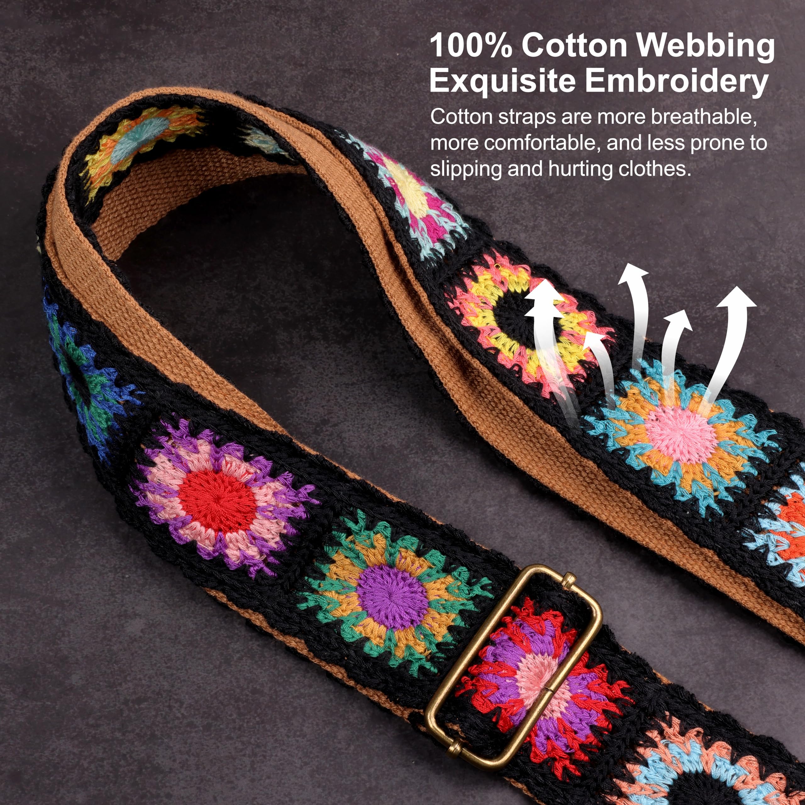 Siehst du aus wie ein Rockstar? Dann brauchst du auch den passenden Gurt! Dieser Jacquard-Gitarrengurt mit traditionellen Stickmustern ist einfach der Hammer. Aus hochwertiger Baumwolle mit dicken 2mm Lederenden - super robust und langlebig. Verstellbar von 89-143cm - passt für fast jeden. Mit Schiebeverschluss - einfach auf die perfekte Länge einstellen. Komplett-Set inklusive Gürtelschnalle, Gummischnallen, Nägeln und 10 Plektren! Perfekt für E-Gitarre, Akustikgitarre, Bass und Ukulele. Ein mega Geschenk für Gitarristen zu Weihnachten oder Geburtstag. Mach deinen Auftritt noch professioneller - mit Style der auffällt! Ob auf der Bühne oder im Proberaum - dieser Gurt ist ein echter Hingucker.