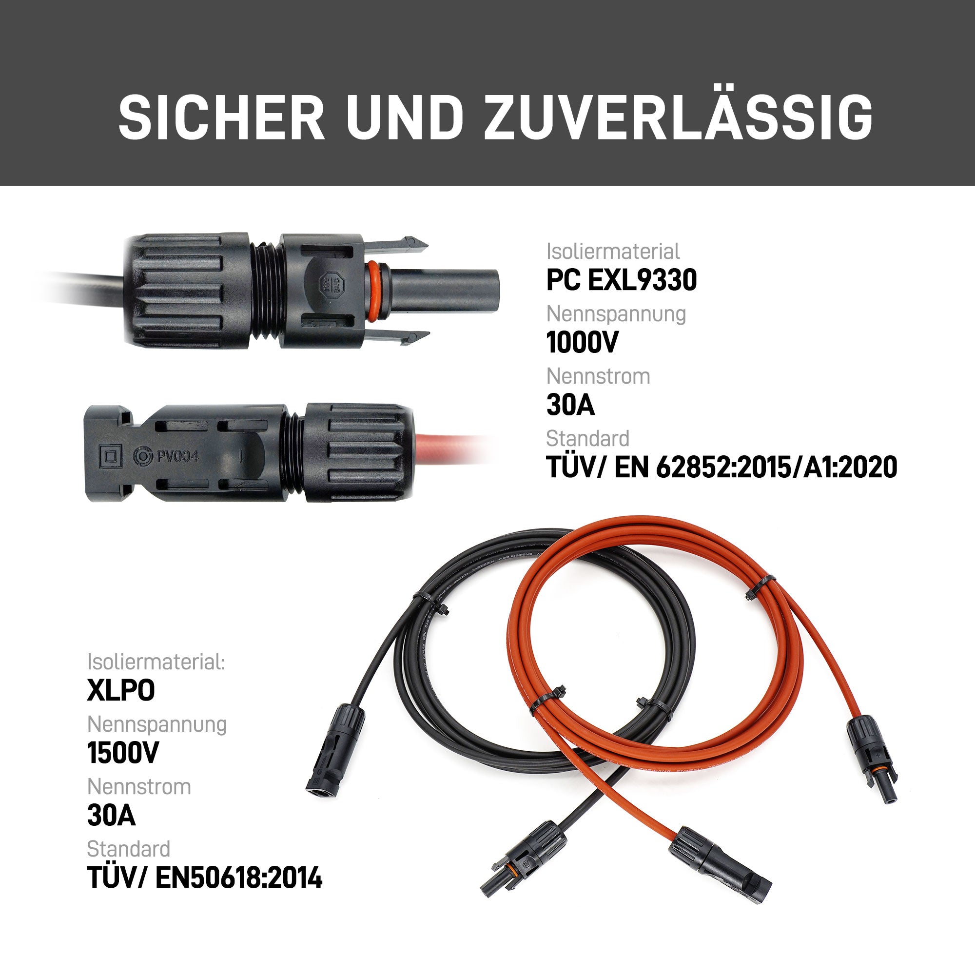 Die umweltfreundliche Gummiummantelung ist flammhemmend und extrem robust. Deutsche Qualität von Jadeshay - für eine zuverlässige Solarstromversorgung!