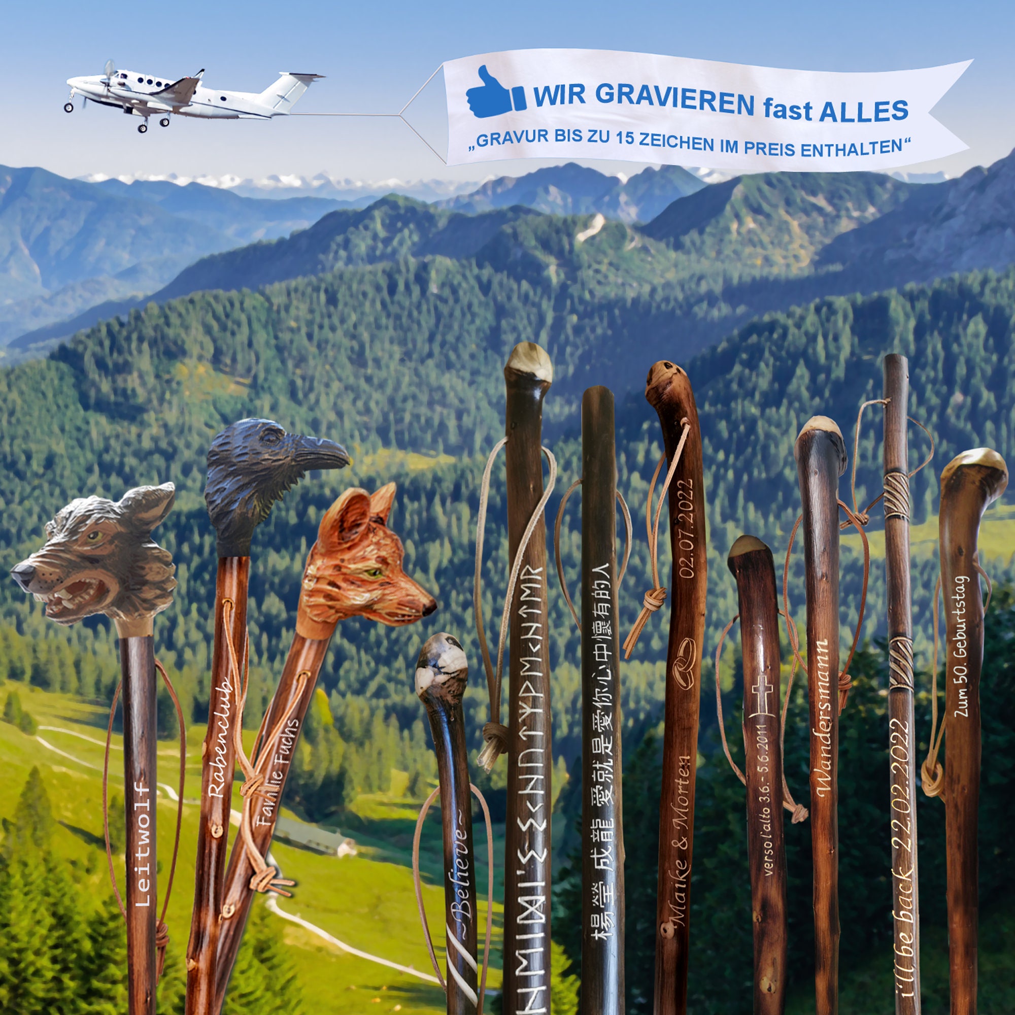 Personalisiertes Wanderstock Aus Holz - Jagdschnitzerei Mit Gravur Bis 15 Zeichen Inklusive