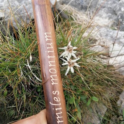 Perfekter Wanderbegleiter für sicheren Halt! Dieser handgefertigte Wanderstock aus Edelkastanie oder Haselnuss gibt dir auf jeder Wanderung optimalen Halt. Besonderes Highlight: Du kannst den Stock mit deinem persönlichen Text gravieren lassen - bis zu 15 Zeichen sind im Preis inklusive! Das macht ihn zum idealen Geschenk für Wanderfreunde jeden Alters. Der Stock verfügt über einen natürlichen Wurzelknauf, eine echte Lederschlaufe und eine stabile Bergstockspitze. Erhältlich in verschiedenen Längen von 98-180 cm und mit einer Belastbarkeit bis 120 kg. Auf Wunsch liefern wir auch andere Spitzen oder Gummikappen nach. Mit dem rustikalen Bambus-Design siehst du dabei auch noch richtig stylisch aus!