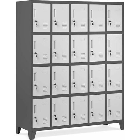 Ordnung für Umkleiden und Betriebe! Dieser Jan Nowak Schrank bietet Platz für 20 Personen. In Anthrazit-Blau - sieht professionell aus! 172x136x45 cm groß - bietet reichlich Stauraum! Jedes Fach 36x24x45 cm - passt Kleidung und persönliche Gegenstände! Aus pulverbeschichtetem Stahlblech - robust und langlebig! Mit Zylinderschloss und je zwei Schlüsseln - sicher und praktisch! Lüftungsschlitze an jeder Tür - verhindert Geruchsbildung! Ideal für Schulen, Fitnessstudios, Schwimmbäder und Betriebe! Einfach aufzubauen - wird fertig geliefert! Macht Umkleiden organisiert und sicher! Perfekt wenn viele Menschen ihre Sachen verstauen müssen! Ein Qualitäts-Produkt das viele Jahre hält!